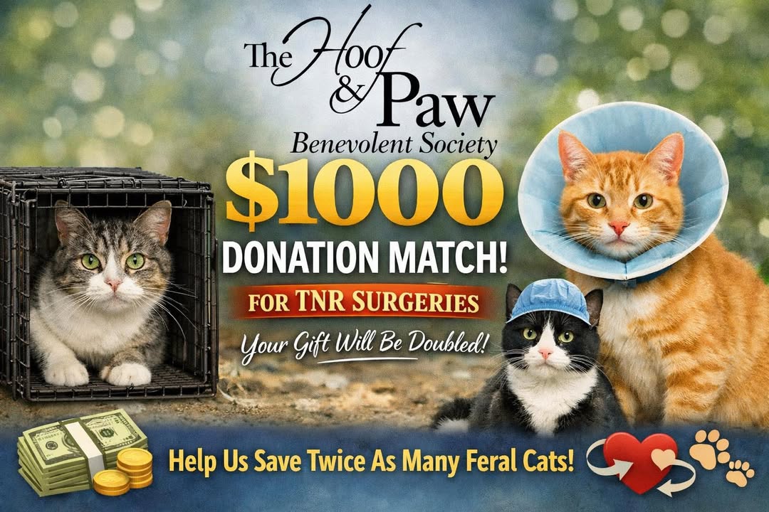 The Hoof and Paw Benevolent Society is a non-profit, 501(c)3 organization dedicated to helping protect, comfort and improve the lives of neglected and abused animals in shelters and rescued in South Carolina. We strive to increase awareness of our cause, support adoptions, encourage spay/neuter and promote education to the general public about responsible pet ownership.